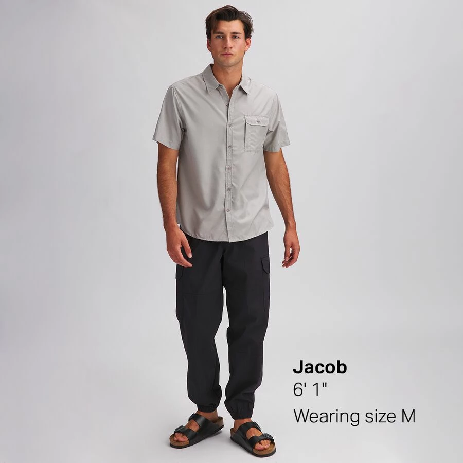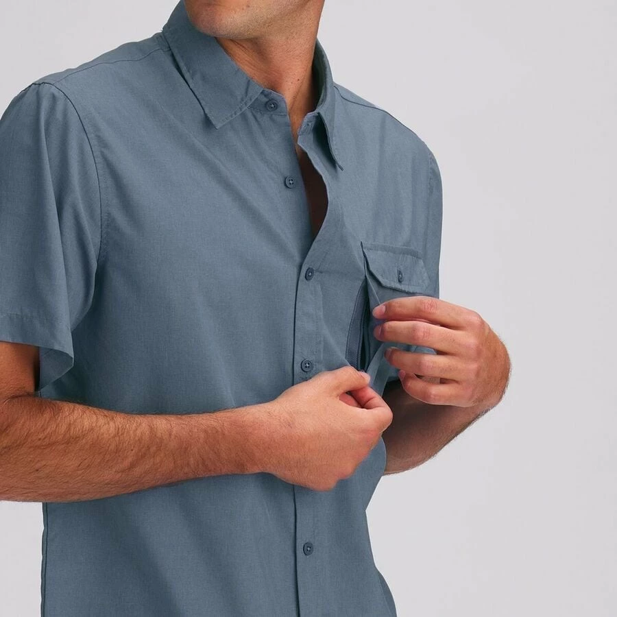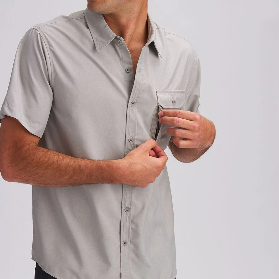 - Adventure-ready button-up built for travel by planes and hiking boots