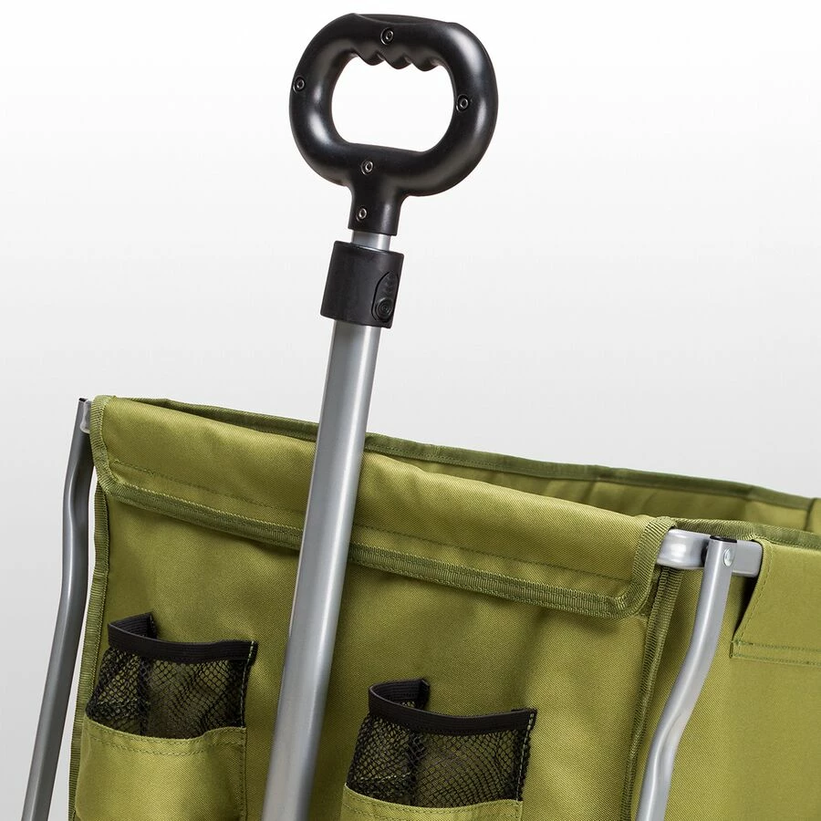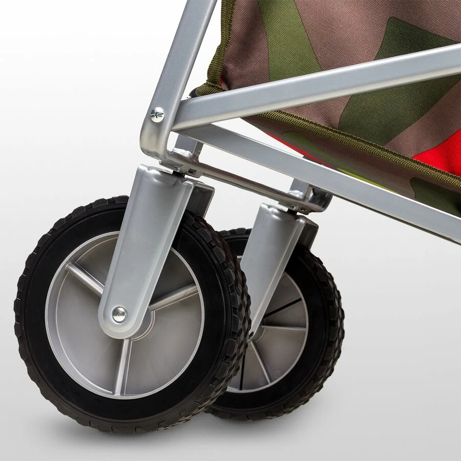 - Large wheels roll effortlessly over uneven terrain
