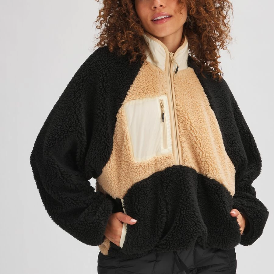 - Material: [face fabric] 100% polyester sherpa, [overlay] 100% polyester plain weave, [lining] 95% polyester, 5% elastane mesh