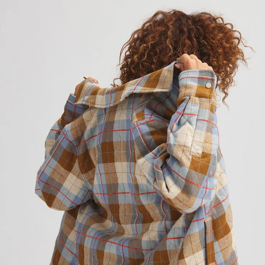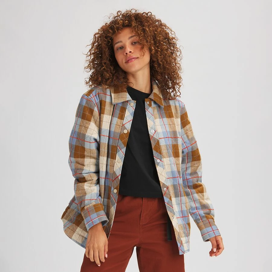 Through pumpkin patches and late-night drives, the Quilted Boyfriend Plaid Shirt Jacket keeps us feeling warm and looking cool. We loaded this flannel top with synthetic insulation for extra heat under the harvest moon, making it an amazing layering piece or a cozy standalone.