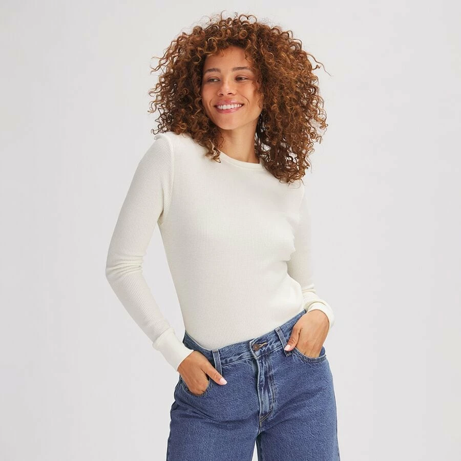 For our casual first-layer Thermal Waffle Crew, we selected a buttery-soft modal-cotton blend for on-skin comfort that adds cozy heat under our down puffies and flannel overshirts.