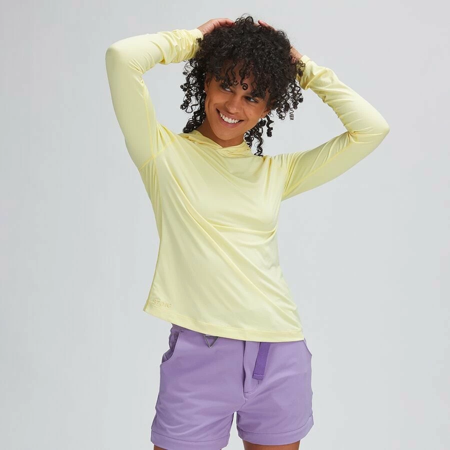 When we need coverage from the sun and moisture-wicking performance we pull on our trusty Venture Hoodie. We designed this with UPF 50+ protection and moisture-wicking but stretchy fabric that helps us move comfortably at the crag, on the trail, or around camp.
